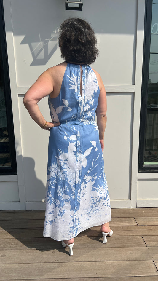NWT Tahari Blue Floral Maxi Dress, Size 14