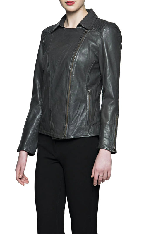BanoeeMee Rama Grey Leather Ribbed Detail Jacket, Size 6Regular price $188.00 CADRegular priceUnit price / per-