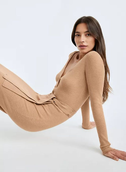 Babaton Tan Ribbed Body Con Maxi Dress No Belt, Size MRegular price $62.00 CADRegular priceUnit price / per-