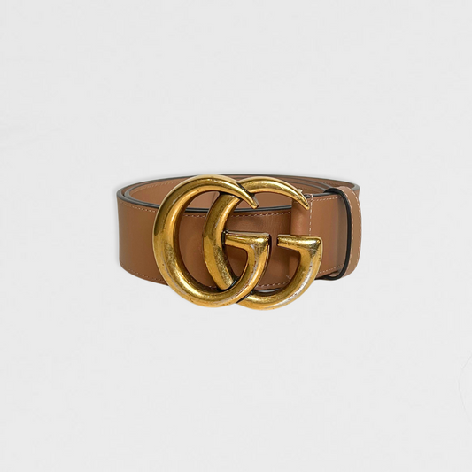 Sold outGucci Gold Clasp Carmel Belt + Box