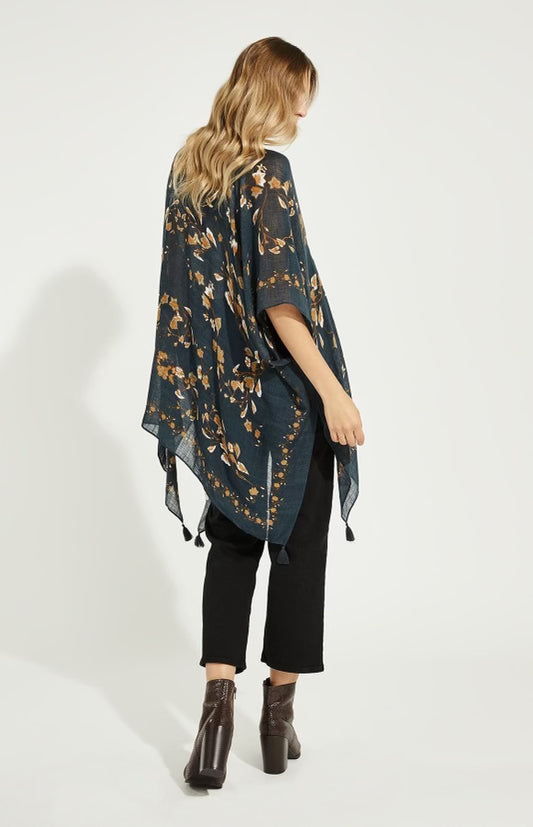 Gentle Fawn Navy Floral Kimono, Size O/S