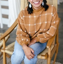 Anthropologie Porridge Tan Square Printed Sweater, Size S