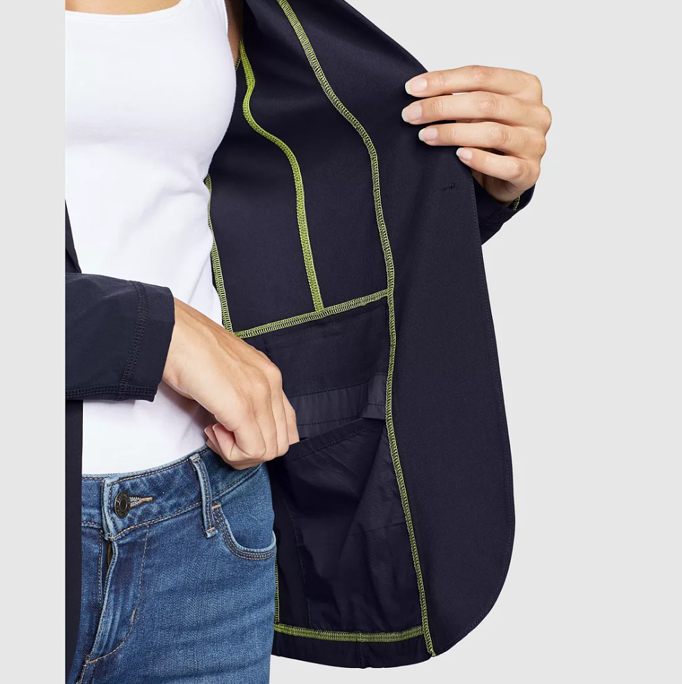 Additional Information: This unstructured, single-button blazer is made of a moisture-wicking polyester/spandex blend. The lightweight fabric packs easily, wears beautifully, and has built-in UPF sun protection. A classic, whether you're traveling or headed to the office!